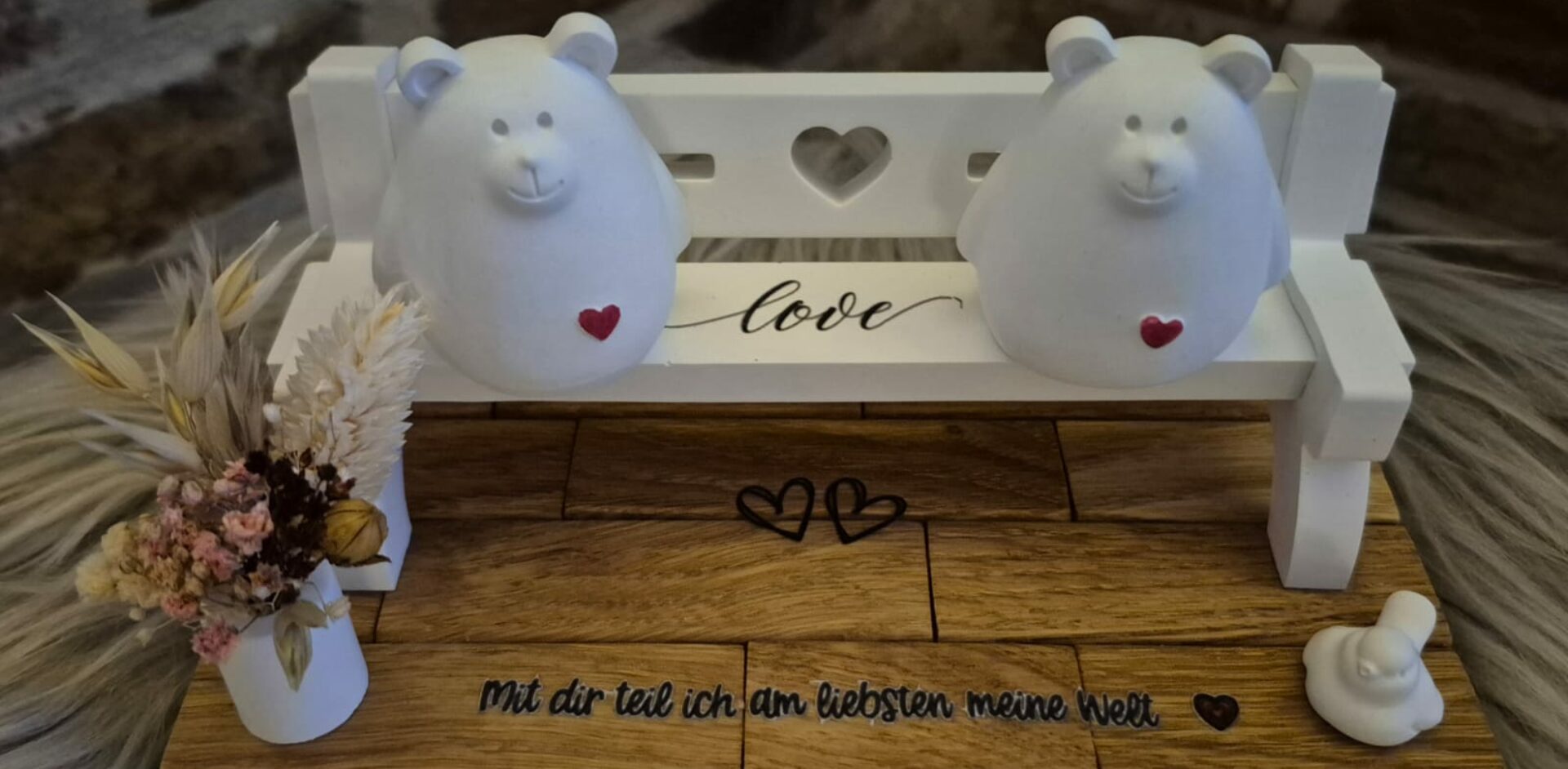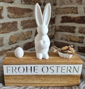 Mit einem süßen Hasen , auf Eiche-Klötzchen, dekoriert 🐇🌺