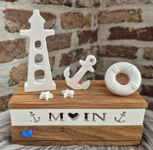 Tolle Lichterbox aus Eiche-Klötzchen mit einem „Moin“… 🥰